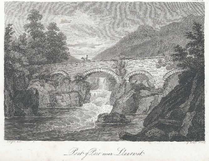 | Keywords: Pont y Pair near Llanrwst.jpeg Abstract A view of the bridge and waterfall at Pont-y-pair showing the waterfall and a man crossing the bridge on horesback Size mm 135 143 exhibition history Institution National Library of Wales Technique print engraving bw object history object type PD-old-100-1923 place of creation place of discovery 1132277 Pont y Pair near Llanrwst Uploaded with GWToolset Pont y Pair near Llanrwst http //dams llgc org uk/behaviour/llgc-id 1132277/fedora-bdef image/reference Images uploaded as part of NLW - WMUK collaboration Welsh Landscape Collection Pont-y-Pair Betws-y-Coed River Conwy 1804 in art Bridges in art Waterfalls in art Horses in art Rivers of Wales Wales in the 1800s |