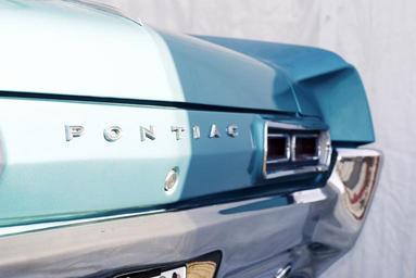Keywords: pontiac ventura auto automobile vehicle transportation classic vintage blue trunk car tail light rear light taillight backend back light chrome