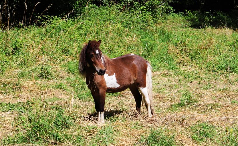 Keywords: pony equine mane brown white animal eat feed pre mammal