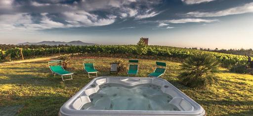 Keywords: pool garden chairs tuscany grape field nature green outdoors landscape sky morning evening tree wine italy clouds wide farm