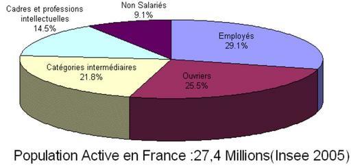 Keywords: Popact2005.gif Population Active en France 2005 source Insee 2006-06-26 own assumed Lax1 Source User Lax1 Lax1 License Public Domain 3D pie charts Demographic charts of France