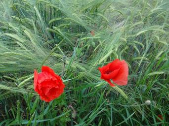 Keywords: poppies flower grain nature blooming green summer outdoor romantic season natural barley