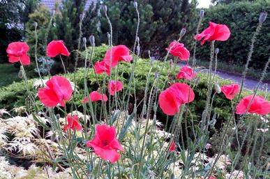 Keywords: poppies stems flowers red summer nature petals field