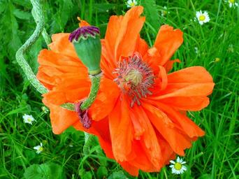 Keywords: poppy blossom bloom red orange boll green spring