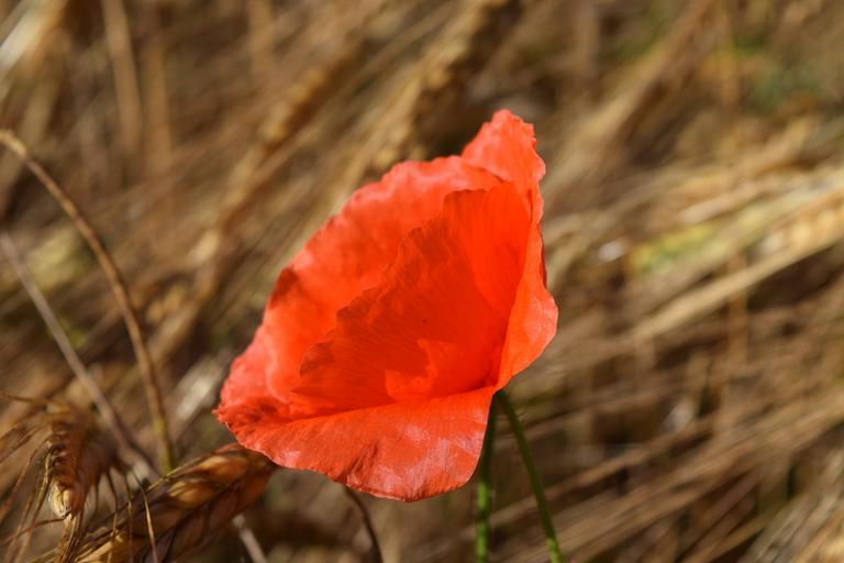 Keywords: poppy cornfield barley field close red blossom bloom poppy flower summer