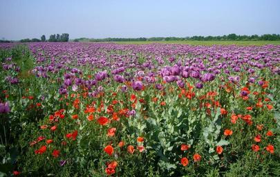 Keywords: poppy field field of poppies flower mohngewaechs violet poppy flower