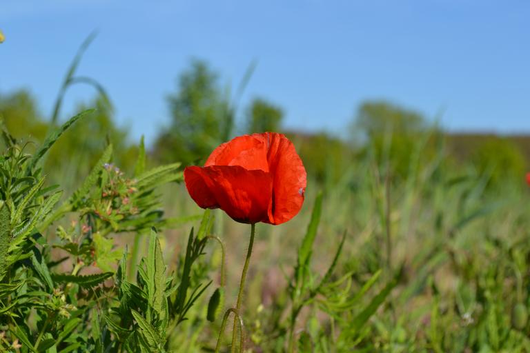 Keywords: poppy flower nature spring red red flower green meadow flowers field bloom blue sky