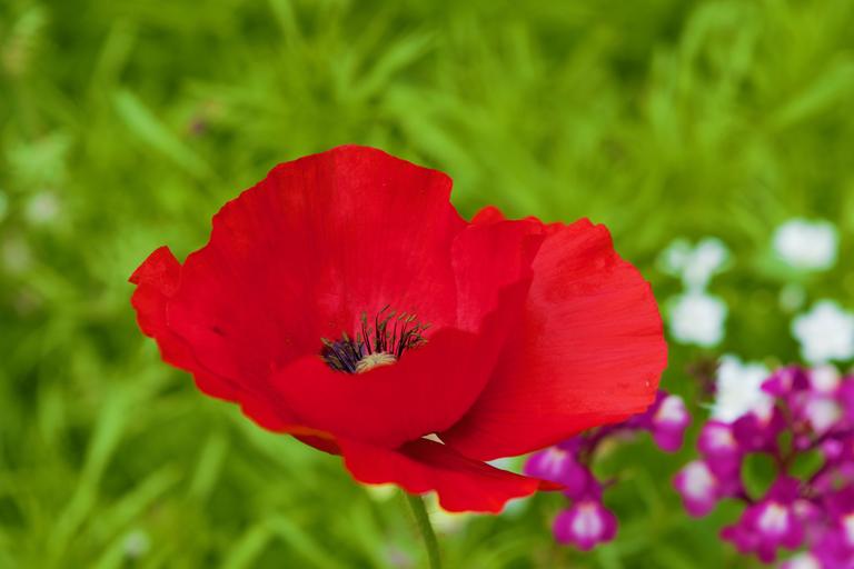 Keywords: poppy flower red green nature petals summer plant bloom grass