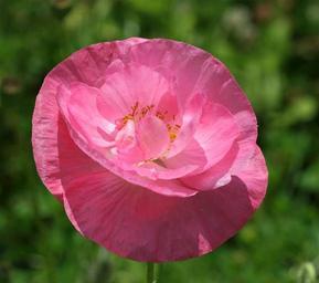 Keywords: poppy flowers pink petals blossoms blooms blooming spring flowering plants ornamental decorative sunny bright gardens gardening poppies green background glossy delicate soft wild