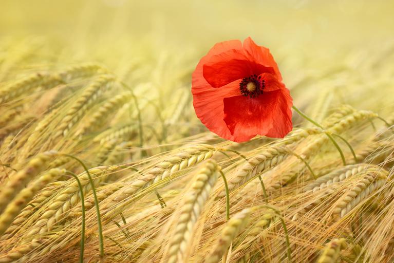 Keywords: poppy grain cornfield summer mohngewaechs cereals spike wheat field flower nature poppy flower gold golden light yellow red
