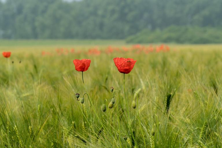 Keywords: poppy green poppy flower poppy bud blossom bloom red nature flower plant klatschmohn red poppy close summer landscape early summer sky agriculture rural field