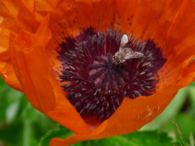 Keywords: poppy klatschmohn blossom bloom flower medicinal plant petal beautiful colorful color flora orange bee sprinkle insect