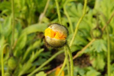 Keywords: poppy poppy bud poppy flower bursting klatschmohn blossom folded bud yellow poppy hairy