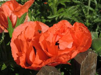 Keywords: poppy poppy flower klatschmohn red blossom bloom orange bee insect garden summer