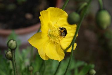 Keywords: poppy yellow bloom bee flower