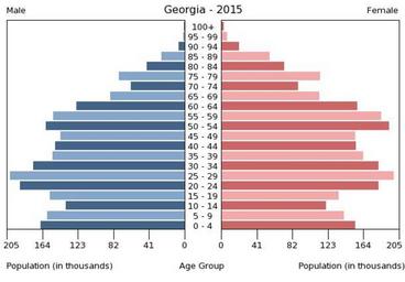 Keywords: Population pyramid of Georgia 2015.png en A population pyramid illustrates the age and sex structure of population and may provide insights about political and social stability as well as economic development The population is distributed along the horizontal axis with males shown on the left and females on the right The male and female populations are broken down into 5-year age groups represented as horizontal bars along the vertical axis with the youngest age groups at the bottom and the oldest at the top The shape of the population pyramid gradually evolves over time based on fertility mortality and international migration trends Віково-статева пі аміда населення Г узії за 2015 ік Вона дає наочне уявлення п о вікову і статеву ст укту а населення к аїни може слугувати дже елом інфо мації п о політичну і соціальну стабільність економічний озвиток Блакитними кольо ами ліво уч у вигляді го изонтальних смуг показані вікові г упи по 5 оків кожна чоловічої статі п аво уч ожевими жіночої аймолодші вікові г упи внизу найста іші вго і Фо ма пі аміди поступово еволюціонує з плином часу під впливом чинників на оджуваності сме тності і світової міг ації https //www cia gov/library/publications/the-world-factbook/ The World Factbook 2016-09-21 The Central Intelligence Agency Цент альне озвідувальне уп авління PD-USGov Population pyramids of Georgia |