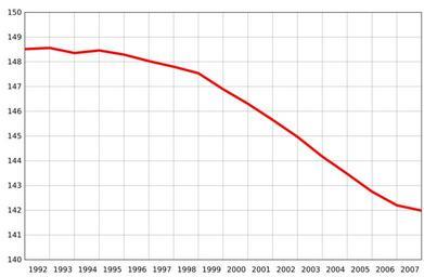 | Keywords: Population of Russia.svg Russia's population 1992-2008 Own 2008-07-01 Conscious X-axis year Y-axis Population of Russia in millions References Federal state statictics service 1992-2006 http //www gks ru/scripts/db_inet/dbinet cgi pl 2403012 2007 http //www gks ru/bgd/free/b07_00/IssWWW exe/Stg/d05/8-0 htm See also 100px - from different source Temporal population graphs of Russia | ||||
