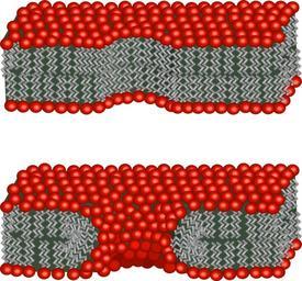 | Keywords: Pore schematic.svg en Diagram of possible lipid arrangements at the edge of a pore through a lipid bilayer above In the absence of any re-arrangement the pore walls will be hydrophobic since the alkane tails are exposed below Some researchers believe that the lipids at the edge re-orient to line the pore wall with hydrophilic head groups Own MDougM 2009-02-12 Lipids Ultrastructure diagrams Cell membrane Molecular biology Biomechanics Lipid bilayers | ||||