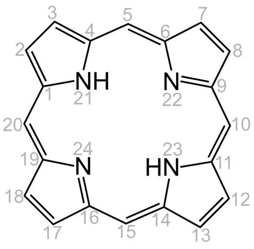 Keywords: Porphyrine General Formula V.1.svg en Porphyrine_General_Formula de Porphyrin-Grundstruktur mit Nummerierung own Jü 2013-03-24 Chemical structures to explain nomenclature Cc-zero