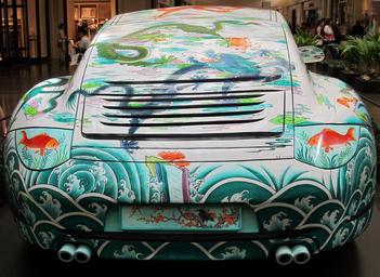 Keywords: porsche car vehicle painted oriental motif theme design images ornamental colorful art artwork elaborate