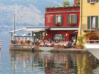 Keywords: port city italy garda harbour restaurant restaurant water terrace malcesine romance mood
