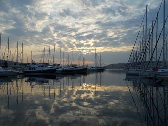 Keywords: port clouds water sea boats mood