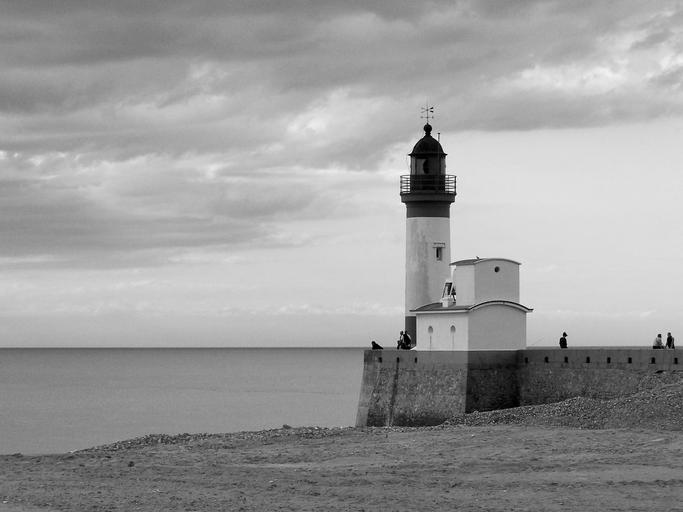 Keywords: port lighthouse sea france maritime water side the sea marine black and white beach pebble normandy tréport pebble beach