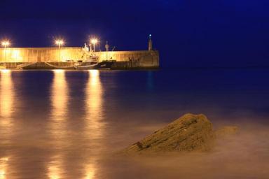 Keywords: port night blue yellow beach sea sand spain