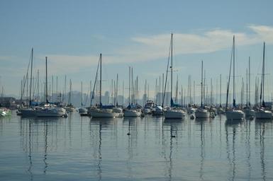 Keywords: port ocean ship reflection sea blue light water sky clouds