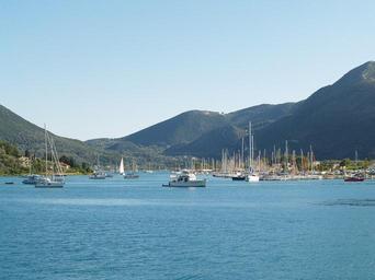 Keywords: port sea hills greece blue ship