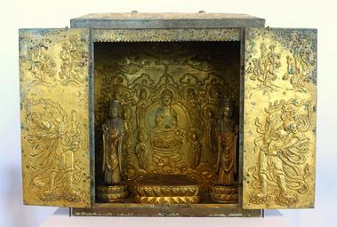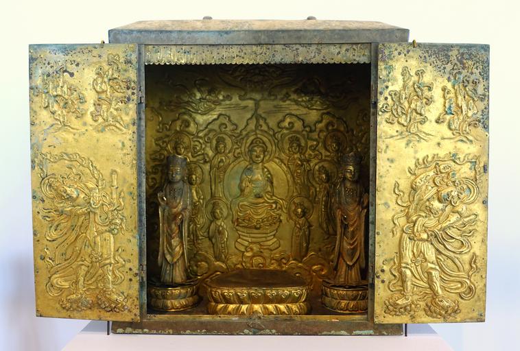 | Keywords: Portable Buddhist Shrine with Two Standing Bodhisattvas, Korea, Koryo or Choson dynasty, 14th to early 15th century AD, gilt bronze - Arthur M. Sackler Museum, Harvard University - DSC00879.jpg en Exhibit in the Arthur M Sackler Museum Harvard University Cambridge Massachusetts USA This artwork is in the public domain because the artist died more than 70 years ago 2015-04-11 11 01 47 own Daderot other versions PD-old-70 cc-zero Buddhist statuettes in the Arthur M Sackler Museum Korean metalwork in the Sackler Museum Sculptures of Korea in the Arthur M Sackler Museum Metalwork of the Goryeo Dynasty |