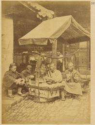 | Keywords: Portable Kitchen and Diners. Beijing, 1874 WDL2047.png Artwork ru Боя ский Адольф- иколай Э азмович fr Boiarskii Adolf-Nikolay Erazmovich en Boiarskii Adolf-Nikolay Erazmovich zh 阿道夫 伊拉莫维奇 鲍 尔斯基 pt Boiarskii Adolf-Nikolay Erazmovich ar أدولف-نيكولاي إرازموفيتش بويارسكي es Boiarskii Adolf-Nikolay Erazmovich ru Пе едвижная кухня и люди за обедом г Пекин 1874 г fr Cuisine ambulante avec dîneurs Pékin 1874 en Portable Kitchen and Diners Beijing 1874 zh 流动饭摊与食客们 北京,1874 年 pt Louças e cozinha portáteis Pequim 1874 ar مطبخ قابل للنقل وبجواره بعض ممن يتناولون الطعام بكين، 1874 ru В 1874 1875 гг оссийское п авительство нап авило в Китай учено-то говую экспедицию с целью поиска новых сухопутных ма ш утов к китайскому ынку оценок возможностей для более активной то говли и для асположений консульств и фаб ик а также сбо а инфо мации о Дунганском восстании бушевавшем в то в емя в западных айонах Китая Экспедиция уководителем кото ой был полковник Гене ального штаба Ю А Сосновский состояла из девяти человек капитана атусовского топог афа докто а Павла Яковлевича Пясецкого научного сот удника пе еводчиков с усского и китайского языков т оих казаков и фотог афа экспедиции Адольфа Э азмовича Боя ского Экспедиция отп авилась из Санкт-Пете бу га в Шанхай че ез Улан-Бато онголия Пекин и Тяньцзинь и затем последовала по ма ш уту вдоль еки Янцзы по Великому шелковому пути п оходя че ез оазис Хами к озе у Зайсан об атно в Россию Боя ский сделал около 200 снимков кото ые легли в основу уникальных мате иалов для изучения Китая того в емени Большая часть фотог афий вошла в этот альбом кото ый позже стал частью коллекции Те езы К истины а ии соб анной импе ато ом Б азилии Пед у II и пе еданной им ациональной библиотеке Б азилии <br>Китайцы; Еда и напитки; П одавцы п одовольственных това ов; Память ми а; П одавцы; Уличные то говцы fr En 1874-1875 le gouvernement russe organisa une mission commerciale et de recherche en Chine Cette mission avait pour objectif de trouver de nouvelles routes terrestres vers le marché chinois d'étudier les perspectives d'une expansion commerciale de rechercher des sites pour l'installation de consulats et d'usines et de recueillir des informations sur la révolte de Dungan qui faisait alors rage dans les provinces de la Chine occidentale Composée de 9 hommes et dirigée par le lieutenant-colonel Iulian A Sosnovskii de l'état-major général de l'armée cette mission comprenait également un topographe le capitaine Matusovskii un responsable scientifique le Dr Pavel Iakovlevich Piasetskii des interprètes chinois et russes trois sous-officiers cosaques et le photographe de la mission Adolf Erazmovich Boiarskii La mission se déroula de Saint-Pétersbourg à Shanghai en passant par Oulan-Bator Mongolie Pékin et Tianjin Elle longea ensuite le fleuve Yangtsé et suivit la grande Route de la soie à travers l'oasis Hami et jusqu'au lac Zaysan de retour en Russie Adolf Erazmovich Boiarskii prit quelque 200 photographies ce qui constitue une source unique pour l'étude de la Chine de cette période La plupart des photographies prises durant cette mission apparaissent dans cet album lequel rejoignit par la suite la collection Thereza Christina Maria rassemblée par l'empereur Pierre II du Brésil qui en fit don à la Bibliothèque nationale du Brésil <br>Chinois; Gastronomie et boissons; Épiciers; Mémoire du monde; Marchands ambulants; Vendeurs ambulants en In 1874-75 the Russian government sent a research and trading mission to China to seek out new overland routes to the Chinese market report on prospects for increased commerce and locations for consulates and factories and gather information about the Dungan Revolt then raging in parts of western China Led by Lieutenant Colonel Iulian A Sosnovskii of the army General Staff the nine-man mission included a topographer Captain Matusovskii; a scientific officer Dr Pavel Iakovlevich Piasetskii; Chinese and Russian interpreters; three non-commissioned Cossack soldiers; and the mission photographer Adolf Erazmovich Boiarskii The mission proceeded from Saint Petersburg to Shanghai via Ulan Bator Mongolia Beijing and Tianjin and then followed a route along the Yangtze River along the Great Silk Road through the Hami oasis to Lake Zaysan back to Russia Boiarskii took some 200 photographs which constitute a unique resource for the study of China in this period Most of the photographs are included in this album which later became part of the Thereza Christina Maria Collection assembled by Emperor Pedro II of Brazil and given by him to the National Library of Brazil <br>Chinese; Eating and drinking; Food vendors; Memory of the World; Peddlers; Street vendors zh 1874-1875 年,俄罗斯政 向中国派出 支科学和贸易 察团, 察经由陆路进军中国市 