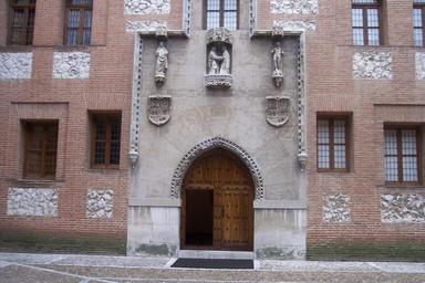 | Keywords: Portada del patio de armas en La Mota.jpg Portada en el Patio de Armas del Castillo de La Mota en Medina del Campo Valladolid España Reproduction of the door of the Hospital of La Latina at the Castle of La Mota Valladolid Spain The central figures represent Queen Isabella the Cathollic Queen and her teacher and advisor Beatriz Galindo La Latina The original is at the Architecture School of the Polythecnic University of Madrid U P M own 2005-11-27 Usuario Zoser Zoser Portals in Castile and León Castillo de la Mota Isabella of Castile Gothic art in Castile and León |