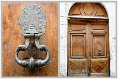 | Keywords: bois ferrures heurtoir lyon porte photo border architecture texture Vieux Lyon - FRANCE -Un heurtoir est généralement constitué d'une partie mobile, souvent en forme d'anneau, de marteau ou de maillet, et d'une partie immobile sur laquelle est fixée la partie mobile. On utilise la partie mobile pour frapper sur la porte ou sur la partie fixe. Les anneaux peuvent aussi servir à tirer la porte . La plupart des heurtoirs sont en métal, certains sont richement décorés. Ceux qui représentent des figurines sont appelés marmousets, mais on trouve également des heurtoirs en forme de main ou de figures abstraites. Les figures les plus répandues sont le griffon, la chimère ou le lion. Elles apparaissent traditionnellement sur les portes d'églises. Vieux Lyon - FRANCE -Un heurtoir est généralement constitué d'une partie mobile, souvent en forme d'anneau, de marteau ou de maillet, et d'une partie immobile sur laquelle est fixée la partie mobile. On utilise la partie mobile pour frapper sur la porte ou sur la partie fixe. Les anneaux peuvent aussi servir à tirer la porte . La plupart des heurtoirs sont en métal, certains sont richement décorés. Ceux qui représentent des figurines sont appelés marmousets, mais on trouve également des heurtoirs en forme de main ou de figures abstraites. Les figures les plus répandues sont le griffon, la chimère ou le lion. Elles apparaissent traditionnellement sur les portes d'églises. |