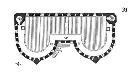 | Keywords: Porte.Narbonnaise.Carcassonne.4.png Nous donnons fig 21 le plan de l'étage M supérieur dont le plancher était de bois En WN sont les chemins de ronde de la défense et en X une partie des hourds en place Viollet-le-Duc Portals Viollet-le-Duc |