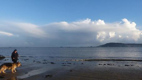 Keywords: portland dorset dog coastline coastal marine shore landscape shoreline clouds blue