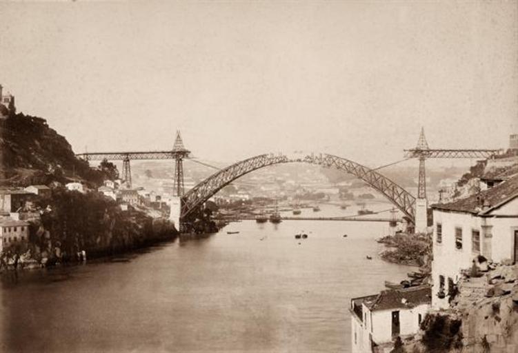 | Keywords: Porto. Ponte D. Luís. Tabuleiro central em construção.jpg Photograph en Porto Dom Luis bridge Central arch under construction depicted place Ponte Luís I Porto between 1881 1886 Technique albumen print cream-colored cardboard Size cm 50 40 Institution Palácio Nacional da Ajuda object history exhibition history credit line accession number http //www matrizpix dgpc pt/MatrizPix/Fotografias/FotografiasFiltrar aspx Matrizpiz Reproduction 37397 TC Object RF 64151 cx 62 Instituto dos Museus e da Conservação http //www matrizpix dgpc pt/MatrizPix/Fotografias/FotografiasConsultar aspx TIPOPESQ 4 NUMPAG 1 REGPAG 50 CRITERIO TERMOS NUMINVOBJ F+64151+cx +62 IDFOTO 81069 Info Pic PD-old-auto 1915 Images from the Instituto dos Museus e da Conservação Emílio Biel Dom Luis I bridge from east Porto in the 19th century Ponte pênsil D Maria II Dom Luis I bridge under construction Files uploaded by User JotaCartas Historical images of bridges in Portugal |