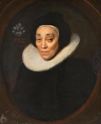 | Keywords: Portrait Adlige 1647 Wappen.jpg artwork Creator Anonymous Portrait of a Lady signature/date upperleft Oben links Familienwappen In blau ein silberner Balken belegt mit zwei roten Kreisen Rosen 1647 Oil on canvas cm 65 54 Institution unknown http //www kettererkunst de other versions PD-old-100 DEFAULTSORT 1647; unknown woman 17th-century unidentified painters 17th-century portrait paintings location missing 17th-century portrait paintings of unidentified women 1647 oil on canvas paintings Portrait 1647 portrait paintings 17th-century oil oval portraits of women at bust length 17th-century portraits with coat of arms 17th-century women looking at viewer in art 1 fess argent 2 eight rays argent in heraldry Argent azure gules in heraldry Images from Ketterer Kunst Ruffs in art female Three-quarter view painted portraits of women facing left |