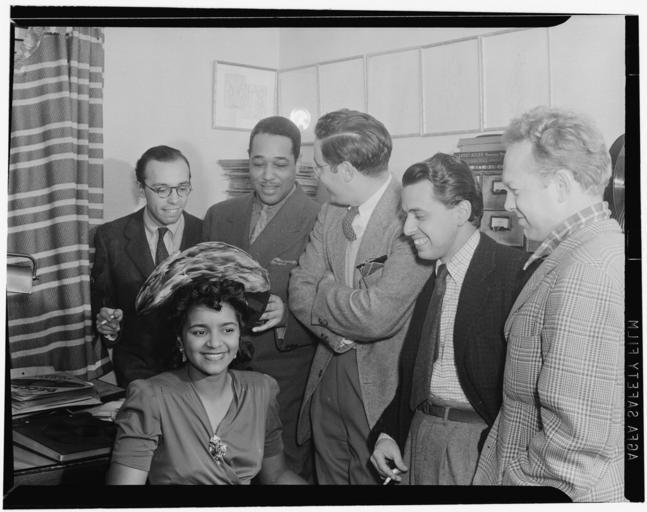 | Keywords: (Portrait of Ahmet M. Ertegun, Duke Ellington, William P. Gottlieb, Nesuhi Ertegun, and Dave Stewart, William P. Gottlieb's home, Maryland, 1941) (LOC) (4843127219).jpg Gottlieb Delia Potofsky photographer Portrait of Ahmet M Ertegun Duke Ellington William P Gottlieb Nesuhi Ertegun and Dave Stewart William P Gottlieb's home Maryland 1941 1 negative b w ; 3 1/4 x 4 1/4 in Notes Gottlieb Collection Assignment No 126 Reference print available in Music Division Library of Congress Purchase William P Gottlieb Forms part of William P Gottlieb Collection Library of Congress Subjects Ertegun Ahmet M Ellington Duke 1899-1974 Gottlieb William P Ertegun Nesuhi Stewart Dave Jazz musicians--1940-1950 Composers--1940-1950 Pianists--1940-1950 News photographers--1940-1950 Sound recording executives and producers--1940-1950 Format Portrait photographs--1940-1950 Group portraits--1940-1950 Film negatives--1940-1950 Rights Info Mr Gottlieb has dedicated these works to the public domain but rights of privacy and publicity may apply http //lcweb2 loc gov/diglib/ihas/html/gottlieb/gottlieb-copyright html lcweb2 loc gov/diglib/ihas/html/gottlieb/gottlieb-copyrig Repository negative Library of Congress Prints Photographs Division Washington D C 20540 USA http //hdl loc gov/loc pnp/pp print hdl loc gov/loc pnp/pp print reference print Library of Congress Music Division Washington D C 20540 USA http //loc gov/rr/perform/ loc gov/rr/perform/ Part Of William P Gottlieb Collection DLC 99-401005 General information about the Gottlieb Collection is available at http //lcweb2 loc gov/diglib/ihas/html/gottlieb/gottlieb-home html lcweb2 loc gov/diglib/ihas/html/gottlieb/gottlieb-home html Persistent URL http //hdl loc gov/loc music/gottlieb 02341 hdl loc gov/loc music/gottlieb 02341 Call Number LC-GLB13- 0234<br/> PD-Gottlieb https //www flickr com/photos/library_of_congress/4843127219/ Portrait of Ahmet M Ertegun Duke Ellington William P Gottlieb Nesuhi Ertegun and Dave Stewart William P Gottlieb's home Maryland 1941 LOC https //www flickr com/people/8623220 N02 The Library of Congress http //www loc gov/rr/print/195_copr html noknown The Library of Congress Flickr Commons Flickr-no known copyright restrictions The Library of Congress https //flickr com/photos/8623220 N02/4843127219 2015-09-01 22 53 53 pd Photographs by William P Gottlieb |