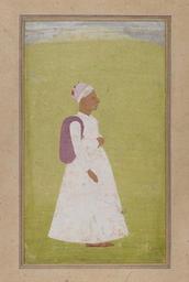 | Keywords: Portrait of an Old Man Northern India.jpg Indian portrait paintings often depict their subjects standing in profile against a plain backdrop This quiet delicate portrait of an unidentified older man appears to have been made in Marwar the princely state surrounding the city of Jodhpur in Rajasthan because the man wears a Marwari-style turban He does not wear particularly opulent clothing he lacks jewelry a sword or the decorative sash usually sported by courtiers in this period The emphasis of the painting seems to be on the sensitive rendering of his wrinkled face and on the unusual purple sack that he carries over one shoulder It is likely that this man was an honored artist or scholar someone worth celebrating in a courtly portrait but not a member of the aristocracy ~ 1730 Opaque watercolor on paper Overall 9 3/8 x 5 7/16 in 23 8 x 13 8 cm Brooklyn Museum object history credit line Gift of the executors of the estate of Colonel Michael Friedsam accession number 32 1322 http //www brooklynmuseum org/opencollection/labs/splitsecond/painting php id 7 Brooklyn_Museum-no_known_restrictions PD-Art Uploaded with UploadWizard Rajput men 1730s paintings from India |