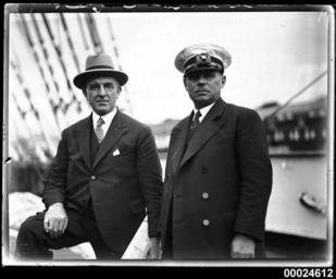 | Keywords: samuel j hood collection samueljhoodcollection foreign vessel foreignvessel merchant vessel merchantvessel barque captain ship's personnel shipspersonnel portrait men lorenz peters lorenzpeters harold crofton sleigh haroldcroftonsleigh magdalene vinnen magdalenevinnen sydney harbour sydneyharbour harbour scenes harbourscenes woolloomooloo blackandwhite people monochrome photo border black and white The four-masted steel barque, MAGDALENE VINNEN, was built in 1921 in Kiel, Germany for F A Vinnen and Company in Bremen. On 27 February 1933, under the command of Captain Lorenz Peters, MAGDALENE VINNEN sailed into Sydney Harbour. The masts were too tall to allow the vessel to pass under the Harbour Bridge to be berthed in Pyrmont, so it was moved to Number 2 wharf in Woolloomooloo. The barque was loaded with almost 16,000 bales of wool, the fourth largest shipment to have left Sydney, before it sailed the record-breaking 82-day voyage for Falmouth, England. The barque visited Australia again in 1935, with its cargo being wheat, lifted from Port Broughton in South Australia. The following year, the vessel was sold to Norddeutscher Lloyd, Bremen, renamed KOMMODORE JOHNSEN and used as a cargo carrier and sail-training ship. In 1945, the ship was awarded to the Soviet Union as war compensation and renamed SEDOV. When it was first built, it was the largest auxiliary barque in the world. To this day, it is still in operation and in 2011, it retained its ranking as the largest tall ship in the world. This photo is part of the Australian National Maritime Museum’s Samuel J. Hood Studio collection. Sam Hood (1872-1953) was a Sydney photographer with a passion for ships. His 60-year career spanned the romantic age of sail and two world wars. The photos in the collection were taken mainly in Sydney and Newcastle during the first half of the 20th century. The ANMM undertakes research and accepts public comments that enhance the information we hold about images in our collection. This record has been updated accordingly. Photographer: Samuel J. Hood Studio Collection Object no. 00024612 The four-masted steel barque, MAGDALENE VINNEN, was built in 1921 in Kiel, Germany for F A Vinnen and Company in Bremen. On 27 February 1933, under the command of Captain Lorenz Peters, MAGDALENE VINNEN sailed into Sydney Harbour. The masts were too tall to allow the vessel to pass under the Harbour Bridge to be berthed in Pyrmont, so it was moved to Number 2 wharf in Woolloomooloo. The barque was loaded with almost 16,000 bales of wool, the fourth largest shipment to have left Sydney, before it sailed the record-breaking 82-day voyage for Falmouth, England. The barque visited Australia again in 1935, with its cargo being wheat, lifted from Port Broughton in South Australia. The following year, the vessel was sold to Norddeutscher Lloyd, Bremen, renamed KOMMODORE JOHNSEN and used as a cargo carrier and sail-training ship. In 1945, the ship was awarded to the Soviet Union as war compensation and renamed SEDOV. When it was first built, it was the largest auxiliary barque in the world. To this day, it is still in operation and in 2011, it retained its ranking as the largest tall ship in the world. This photo is part of the Australian National Maritime Museum’s Samuel J. Hood Studio collection. Sam Hood (1872-1953) was a Sydney photographer with a passion for ships. His 60-year career spanned the romantic age of sail and two world wars. The photos in the collection were taken mainly in Sydney and Newcastle during the first half of the 20th century. The ANMM undertakes research and accepts public comments that enhance the information we hold about images in our collection. This record has been updated accordingly. Photographer: Samuel J. Hood Studio Collection Object no. 00024612 |