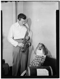 Keywords: (Portrait of Charlie Barnet and Re-Bop, New York, N.Y., ca. Aug. 1946) (LOC) (5189338179).jpg Gottlieb William P 1917- photographer Portrait of Charlie Barnet and Re-Bop New York N Y ca Aug 1946 1 negative b w ; 3 1/4 x 4 1/4 in Caption from Down Beat Charlie Barnet's pet monkey Re-Bop pretends that he doesn't find much harmony in the sax tootlings of his maestro on the cover of this issue But it's all in fun and the grimaces of the monkey are not the reason that Charlie is breaking up his dance band early this month He's going out to California to rest for the remainder of the summer probably will re-organize on the west coast this fall Notes Gottlieb Collection Assignment No 019 Purchase William P Gottlieb Forms part of William P Gottlieb Collection Library of Congress In Charlie Re-Bop on the cover Down Beat v 13 no 17 Aug 12 1946 Subjects Barnet Charlie Re-Bop Jazz musicians--1940-1950 Saxophonists--1940-1950 Format Portrait photographs--1940-1950 Film negatives--1940-1950 Rights Info Mr Gottlieb has dedicated these works to the public domain but rights of privacy and publicity may apply http //lcweb2 loc gov/diglib/ihas/html/gottlieb/gottlieb-copyright html lcweb2 loc gov/diglib/ihas/html/gottlieb/gottlieb-copyrig Repository negative Library of Congress Prints Photographs Division Washington D C 20540 USA http //hdl loc gov/loc pnp/pp print hdl loc gov/loc pnp/pp print Part Of William P Gottlieb Collection DLC 99-401005 General information about the Gottlieb Collection is available at http //lcweb2 loc gov/diglib/ihas/html/gottlieb/gottlieb-home html lcweb2 loc gov/diglib/ihas/html/gottlieb/gottlieb-home html Persistent URL http //hdl loc gov/loc music/gottlieb 09701 hdl loc gov/loc music/gottlieb 09701 Call Number LC-GLB13- 0970<br/> PD-Gottlieb https //www flickr com/photos/library_of_congress/5189338179/ Portrait of Charlie Barnet and Re-Bop New York N Y ca Aug 1946 LOC https //www flickr com/people/8623220 N02 The Library of Congress http //www loc gov/rr/print/195_copr html noknown The Library of Congress Flickr Commons Flickr-no known copyright restrictions The Library of Congress https //flickr com/photos/8623220 N02/5189338179 2015-09-01 22 58 11 pd Unidentified Primates Photographs by William P Gottlieb