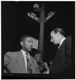 | Keywords: (Portrait of Dizzy Gillespie, 52nd Street, New York, N.Y., between 1946 and 1948) (LOC) (5306972164).jpg Gottlieb William P 1917- photographer Portrait of Dizzy Gillespie 52nd Street New York N Y between 1946 and 1948 1 negative b w ; 2 1/4 x 2 1/4 in Notes Gottlieb Collection Assignment No 523 Purchase William P Gottlieb Forms part of William P Gottlieb Collection Library of Congress Subjects Gillespie Dizzy 1917- Jazz musicians--1940-1950 Trumpet players--1940-1950 Fifty-second Street New York N Y --1940-1950 Format Portrait photographs--1940-1950 Group portraits--1940-1950 Film negatives--1940-1950 Rights Info Mr Gottlieb has dedicated these works to the public domain but rights of privacy and publicity may apply http //lcweb2 loc gov/diglib/ihas/html/gottlieb/gottlieb-copyright html lcweb2 loc gov/diglib/ihas/html/gottlieb/gottlieb-copyrig Repository negative Library of Congress Prints Photographs Division Washington D C 20540 USA http //hdl loc gov/loc pnp/pp print hdl loc gov/loc pnp/pp print Part Of William P Gottlieb Collection DLC 99-401005 General information about the Gottlieb Collection is available at http //lcweb2 loc gov/diglib/ihas/html/gottlieb/gottlieb-home html lcweb2 loc gov/diglib/ihas/html/gottlieb/gottlieb-home html Persistent URL http //hdl loc gov/loc music/gottlieb 11961 hdl loc gov/loc music/gottlieb 11961 Call Number LC-GLB23- 1196<br/> PD-Gottlieb https //www flickr com/photos/library_of_congress/5306972164/ Portrait of Dizzy Gillespie 52nd Street New York N Y between 1946 and 1948 LOC https //www flickr com/people/8623220 N02 The Library of Congress http //www loc gov/rr/print/195_copr html noknown The Library of Congress Flickr Commons Flickr-no known copyright restrictions The Library of Congress https //flickr com/photos/8623220 N02/5306972164 2015-09-01 22 50 47 pd Dizzy Gillespie 6th Avenue Manhattan Photographs by William P Gottlieb |