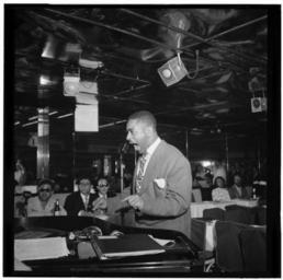 | Keywords: (Portrait of Dizzy Gillespie, Downbeat, New York, N.Y., ca. Aug. 1947) (LOC) (4977081888).jpg Gottlieb William P 1917- photographer Portrait of Dizzy Gillespie Downbeat New York N Y ca Aug 1947 1 negative b w ; 2 1/4 x 2 1/4 in Caption from Down Beat This is what the customers miss when the Diz directs his band back to the audience In the first photo we find an appealing lullaby-like attitude indicating the gentle treatment Picture two makes one wonder what good the mike would do inside Gillespie Climax comes in the third shot It seems a little hard for Dizzy to believe what he hears Last the final bow of exhaustion and the work on one number is over Notes Gottlieb Collection Assignment No 525 Reference print available in Music Division Library of Congress Purchase William P Gottlieb Forms part of William P Gottlieb Collection Library of Congress In Gillespie's gyrations and gestures get his band going Down Beat v 14 no 18 Aug 27 1947 p 2 Subjects Gillespie Dizzy 1917- Jazz musicians--1940-1950 Trumpet players--1940-1950 Fifty-second Street New York N Y --1940-1950 Downbeat Format Portrait photographs--1940-1950 Group portraits--1940-1950 Film negatives--1940-1950 Rights Info Mr Gottlieb has dedicated these works to the public domain but rights of privacy and publicity may apply http //lcweb2 loc gov/diglib/ihas/html/gottlieb/gottlieb-copyright html lcweb2 loc gov/diglib/ihas/html/gottlieb/gottlieb-copyrig Repository negative Library of Congress Prints Photographs Division Washington D C 20540 USA http //hdl loc gov/loc pnp/pp print hdl loc gov/loc pnp/pp print reference print Library of Congress Music Division Washington D C 20540 USA http //loc gov/rr/perform/ loc gov/rr/perform/ Part Of William P Gottlieb Collection DLC 99-401005 General information about the Gottlieb Collection is available at http //lcweb2 loc gov/diglib/ihas/html/gottlieb/gottlieb-home html lcweb2 loc gov/diglib/ihas/html/gottlieb/gottlieb-home html Persistent URL http //hdl loc gov/loc music/gottlieb 03191 hdl loc gov/loc music/gottlieb 03191 Call Number LC-GLB23- 0319<br/> PD-Gottlieb https //www flickr com/photos/library_of_congress/4977081888/ Portrait of Dizzy Gillespie Downbeat New York N Y ca Aug 1947 LOC https //www flickr com/people/8623220 N02 The Library of Congress http //www loc gov/rr/print/195_copr html noknown The Library of Congress Flickr Commons Flickr-no known copyright restrictions The Library of Congress https //flickr com/photos/8623220 N02/4977081888 2015-09-01 22 51 55 pd Photographs by William P Gottlieb Dizzy Gillespie |