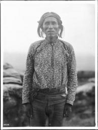 | Keywords: Portrait of "Friendly", a Hopi man at the pueblo of Walpi, Arizona, ca.1898 (CHS-4638).jpg en <br> Portrait of Friendly a Hopi man at the pueblo of Walpi Arizona ca 1898 Photographic portrait of Friendly a Hopi man at the pueblo of Walpi Arizona ca 1898 He stands outside with his arms at his side He wears a printed long-sleeved shirt dark pants and a belt He has a bandana around his head He has long hair and a thin wrinkled face Call number CHS-4638 Legacy record ID chs-m16963; USC-1-1-1-13518 Photographer James George Wharton Filename CHS-4638 Coverage date 1897/1899 Part of collection California Historical Society Collection 1860-1960 Type images Geographic subject city or populated place Walpi Repository name USC Libraries Special Collections Accession number 4638 Microfiche number 1-168- Archival file chs_Volume97/CHS-4638 tiff Part of subcollection Title Insurance and Trust and C C Pierce Photography Collection 1860-1960 Repository address Doheny Memorial Library Los Angeles CA 90089-0189 Geographic subject country USA Format aacr2 2 photographs glass photonegative photoprints b w ; 22 x 17 cm Rights Digitally reproduced by the USC Digital Library; From the California Historical Society Collection at the University of Southern California Subject adlf tribal areas Project USC Repository email specol usc edu Identifying number unidentified no James-228 Contributing entity California Historical Society Date created 1897/1899 Publisher of the digital version University of Southern California Libraries Format aat photographic prints; photographs Geographic subject state Arizona Subject file heading Indians -- Hopi Geographic coordinates -110 397217 35 832218 Format glass plate negatives Access conditions Send requests to address or e-mail given Phone 213 821-2366; fax 213 740-2343 Geographic subject county Navajo Subject lcsh Indians of North America; Hopi Indians; Men Subject Hopi Indians 1897/1899 date created George Wharton James 1858 1923 http //digitallibrary usc edu/cdm/ref/collection/p15799coll65/id/16882 PD-old-70-1923 Images from USC Digital Library uploaded by Fæ Photographs by George Wharton James California Historical Society Collection 1860-1960 Glass plate negatives Hopi men |
