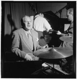 | Keywords: (Portrait of George Wettling, Museum of Modern Music program, ABC studio, New York, N.Y., ca. May 1947) (LOC) (5148204835).jpg Gottlieb William P 1917- photographer Portrait of George Wettling Museum of Modern Music program ABC studio New York N Y ca May 1947 1 negative b w ; 2 1/4 x 2 1/4 in Notes Gottlieb Collection Assignment No 094 Reference print available in Music Division Library of Congress Purchase William P Gottlieb Forms part of William P Gottlieb Collection Library of Congress In Posin' Down Beat v 14 no 10 May 7 1947 p 4 Subjects Wettling George 1907-1968 Jazz musicians--1940-1950 Drummers Musicians --1940-1950 ABC studio Format Portrait photographs--1940-1950 Group portraits--1940-1950 Film negatives--1940-1950 Rights Info Mr Gottlieb has dedicated these works to the public domain but rights of privacy and publicity may apply http //lcweb2 loc gov/diglib/ihas/html/gottlieb/gottlieb-copyright html lcweb2 loc gov/diglib/ihas/html/gottlieb/gottlieb-copyrig Repository negative Library of Congress Prints Photographs Division Washington D C 20540 USA http //hdl loc gov/loc pnp/pp print hdl loc gov/loc pnp/pp print reference print Library of Congress Music Division Washington D C 20540 USA http //loc gov/rr/perform/ loc gov/rr/perform/ Part Of William P Gottlieb Collection DLC 99-401005 General information about the Gottlieb Collection is available at http //lcweb2 loc gov/diglib/ihas/html/gottlieb/gottlieb-home html lcweb2 loc gov/diglib/ihas/html/gottlieb/gottlieb-home html Persistent URL http //hdl loc gov/loc music/gottlieb 09071 hdl loc gov/loc music/gottlieb 09071 Call Number LC-GLB23- 0907<br/> PD-Gottlieb https //www flickr com/photos/library_of_congress/5148204835/ Portrait of George Wettling Museum of Modern Music program ABC studio New York N Y ca May 1947 LOC https //www flickr com/people/8623220 N02 The Library of Congress http //www loc gov/rr/print/195_copr html noknown The Library of Congress Flickr Commons Flickr-no known copyright restrictions The Library of Congress https //flickr com/photos/8623220 N02/5148204835 2015-09-01 22 55 57 pd 1940s George Wettling Drums Photographs by William P Gottlieb |
