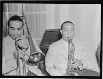| Keywords: (Portrait of Johnny Hodges and Lawrence Brown, Turkish Embassy, Washington, D.C., 193-) (LOC) (5019790697).jpg Gottlieb William P 1917- photographer Portrait of Johnny Hodges and Lawrence Brown Turkish Embassy Washington D C 193- 1 negative b w ; 3 1/4 x 4 1/4 in Notes Gottlieb Collection Assignment No 033 Reference print available in Music Division Library of Congress Purchase William P Gottlieb Forms part of William P Gottlieb Collection Library of Congress In The Record Changer v 5 no 12 Feb 47 1947 p 7 Subjects Hodges Johnny Brown Lawrence 1907-1988 Jazz musicians--1930-1940 Trombonists--1930-1940 Saxophonists--1930-1940 Turkish Embassy Format Portrait photographs--1930-1940 Group portraits--1930-1940 Film negatives--1930-1940 Rights Info Mr Gottlieb has dedicated these works to the public domain but rights of privacy and publicity may apply http //lcweb2 loc gov/diglib/ihas/html/gottlieb/gottlieb-copyright html lcweb2 loc gov/diglib/ihas/html/gottlieb/gottlieb-copyrig Repository negative Library of Congress Prints Photographs Division Washington D C 20540 USA http //hdl loc gov/loc pnp/pp print hdl loc gov/loc pnp/pp print reference print Library of Congress Music Division Washington D C 20540 USA http //loc gov/rr/perform/ loc gov/rr/perform/ Part Of William P Gottlieb Collection DLC 99-401005 General information about the Gottlieb Collection is available at http //lcweb2 loc gov/diglib/ihas/html/gottlieb/gottlieb-home html lcweb2 loc gov/diglib/ihas/html/gottlieb/gottlieb-home html Persistent URL http //hdl loc gov/loc music/gottlieb 04201 hdl loc gov/loc music/gottlieb 04201 Call Number LC-GLB23- 0420<br/> PD-Gottlieb https //www flickr com/photos/library_of_congress/5019790697/ Portrait of Johnny Hodges and Lawrence Brown Turkish Embassy Washington D C 193- LOC https //www flickr com/people/8623220 N02 The Library of Congress http //www loc gov/rr/print/195_copr html noknown The Library of Congress Flickr Commons Flickr-no known copyright restrictions The Library of Congress https //flickr com/photos/8623220 N02/5019790697 2015-09-01 23 55 32 pd Photographs by William P Gottlieb |