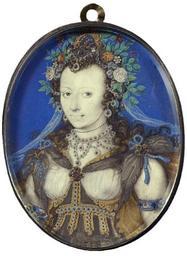 | Keywords: people indoor Henrietta Maria of France, Queen consort of England, Scotland and Ireland (25 November[1] 1609 – 10 September 1669) was the consort of Charles I. She was the mother of two kings, Charles II and James II, and was grandmother to Mary II, William III, and Anne of Great Britain. Henriette-Marie de France was born the daughter of the King of France and Navarre, Henry IV; her mother was the Italian Marie de Medici and was the second consort of Henry IV. As the daughter of the king, she was a Fille de France. She was the youngest sister of the future King Louis XIII of France. Her father was killed before she was under a year old in Paris on 14 May 1610; her mother was banished from the royal court in 1617. From birth she was a member of the House of Bourbon, Maison de Bourbon in French. She was born at the Palais du Louvre on 25 November 1609, but some historians give her a birthdate of 26 November. In England, where the Julian calendar was still in use, her date of birth is often recorded as 16 November. Henrietta Maria was brought up as a Roman Catholic. After her older sister Christine Marie of France married the Sovereign Duke of Savoy in 1619, Henriette Marie took on the highly prestigious style of Madame Royale; this style was used by the most senior royal princess at the French court. She first met her future husband while he was travelling to Spain to arrange a marriage with the Infanta Maria Anna of Spain; Charles met Henriette Marie in Paris en route. The trip however ended badly as the Spanish King Philip III demanded that Charles convert to Roman Catholicism and remain in Spain for a year after the wedding as a sort of hostage to ensure England's compliance with all the terms of the treaty. Charles was outraged, and upon their return in October, he and Buckingham demanded that King James declare war on Spain. Charles then looked elsewhere for a bride. He looked to France where the attractive Henriette Marie lived at the court of her brother and was still unmarried by 1625. This made her an unpopular choice of wife for the English King Charles I of England, whom she married by proxy on 11 May 1625, shortly after his accession to the throne. They were married in person at St. Augustine's Church, Canterbury, Kent, on 13 June 1625. However, her religion made it impossible for her to be crowned with her husband in an Anglican service. Initially their relationship was rather frigid. Henrietta Maria had brought a large and expensive retinue with her from France, all of them Roman Catholic. It is said that eventually Charles sent them home to France, only allowing his teenage bride to retain her chaplain and confessor, Robert Phillip, and two ladies in waiting. Finding her sadly watching the retinue depart for France at the window of a palace, Charles angrily and forcibly dragged his wayward queen away.[citation needed] Charles had intended to marry Maria Anna, a daughter of Philip III of Spain, but a mission to Spain in 1623 had failed. Perhaps this earlier disappointment explains why relations with his French bride were strained; every time the couple met, they started arguing and would separate, not seeing each other for weeks. When next they met, again they had to separate, because they could not stop arguing. Henrietta Maria took an immediate dislike to George Villiers, 1st Duke of Buckingham, the King's favourite. However, after Buckingham's death in August 1628, her relationship with her husband, Charles I, improved and they finally forged deep bonds of love and affection. Her refusal to give up her Catholic faith alienated her from many of the people and certain powerful courtiers such as William Laud, Archbishop of Canterbury and Thomas Wentworth, Earl of Strafford. Charles, on the other hand, had definite leanings towards Catholicism, and, once he had reached maturity, did not share his father's sexual ambivalence. Henrietta Maria increasingly took part in national affairs as the country moved towards open conflict through the 1630s. She despised Puritan courtiers to deflect a diplomatic approach to Spain and sought a coup to pre-empt the Parliamentarians. As war approached she was active in seeking funds and support for her husband, but her concentration on Catholic sources like Pope Urban VIII and the French angered many in England and hindered Charles' efforts. She was also sympathetic to her fellow Catholics and even gave a requiem in her private chapel at Somerset House for Father Richard Blount, S.J. upon his death in 1638. In August 1642, when the conflict began, she was in Europe. She continued to raise money for the Royalist cause, and did not return to England until early 1643. She landed at Bridlington in Yorkshire with troops and arms, and joined the Royalist forces in northern England, making her headquarters at York. She remained with the army in the north for some months before rejoining the King at Oxford. The collapse of the king's position following Scottish intervention on the side of Parliament, and his refusal to accept stringent terms for a settlement led her to flee to France with her sons in July 1644. Charles was executed in 1649, leaving her almost destitute. She settled in Paris, appointing as her chancellor the eccentric Sir Kenelm Digby. She angered both Royalists in exile and her eldest son by attempting to convert her youngest son, Henry, to Catholicism. She returned to England following the Restoration in October 1660 and lived as 'Dowager Queen' and 'Queen Mother' at Somerset House in London until 1665 when she returned permanently to France. After her son's restoration she returned to England where Pepys, on 22 November 1660, met her and described her as a 'very little plain old woman, and nothing more in her presence in any respect nor garb than any ordinary woman'. Her financial problems were resolved by a generous pension. She founded a convent at Chaillot, where she settled. In 1661 she saw her youngest daughter He