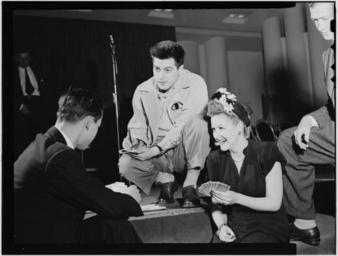 | Keywords: (Portrait of Margaret Whiting and Johnny Desmond, New York, N.Y., between 1946 and 1948) (LOC) (5189330865).jpg Gottlieb William P 1917- photographer Portrait of Margaret Whiting and Johnny Desmond New York N Y between 1946 and 1948 1 negative b w ; 3 1/4 x 4 1/4 in Notes Gottlieb Collection Assignment No 110 Reference print available in Music Division Library of Congress Purchase William P Gottlieb Forms part of William P Gottlieb Collection Library of Congress Subjects Whiting Margaret Desmond Johnny Jazz musicians--1940-1950 Women jazz musicians--1940-1950 Jazz singers--1940-1950 Format Portrait photographs--1940-1950 Group portraits--1940-1950 Film negatives--1940-1950 Rights Info Mr Gottlieb has dedicated these works to the public domain but rights of privacy and publicity may apply http //lcweb2 loc gov/diglib/ihas/html/gottlieb/gottlieb-copyright html lcweb2 loc gov/diglib/ihas/html/gottlieb/gottlieb-copyrig Repository negative Library of Congress Prints Photographs Division Washington D C 20540 USA http //hdl loc gov/loc pnp/pp print hdl loc gov/loc pnp/pp print reference print Library of Congress Music Division Washington D C 20540 USA http //loc gov/rr/perform/ loc gov/rr/perform/ Part Of William P Gottlieb Collection DLC 99-401005 General information about the Gottlieb Collection is available at http //lcweb2 loc gov/diglib/ihas/html/gottlieb/gottlieb-home html lcweb2 loc gov/diglib/ihas/html/gottlieb/gottlieb-home html Persistent URL http //hdl loc gov/loc music/gottlieb 09151 hdl loc gov/loc music/gottlieb 09151 Call Number LC-GLB13- 0915<br/> PD-Gottlieb https //www flickr com/photos/library_of_congress/5189330865/ Portrait of Margaret Whiting and Johnny Desmond New York N Y between 1946 and 1948 LOC https //www flickr com/people/8623220 N02 The Library of Congress http //www loc gov/rr/print/195_copr html noknown The Library of Congress Flickr Commons Flickr-no known copyright restrictions The Library of Congress https //flickr com/photos/8623220 N02/5189330865 2015-09-01 23 51 09 pd Photographs by William P Gottlieb |
