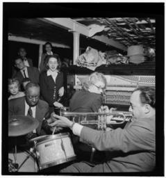 Keywords: (Portrait of Marty Marsala, Bunty Pendelton, and Baby Dodds, Riverboat on the Hudson, N.Y., ca. July 1947) (LOC) (5105158596).jpg Gottlieb William P 1917- photographer Portrait of Marty Marsala Bunty Pendelton and Baby Dodds Riverboat on the Hudson N Y ca July 1947 1 negative b w ; 2 1/4 x 2 1/4 in Caption from Down Beat This is what riverboat jazz on-the-Hudson looks like to staff photographer Bill Gottlieb Whatever Marty Marsala is doing with his trumpet seems to amaze Bunty Pendelton at the piano and Baby Dodds behind the drums Bunty who is the wife of N Y Daily News music reporter Bob Sylvester is just sitting in with the Hodes-Blesh group Notes Gottlieb Collection Assignment No 034 Reference print available in Music Division Library of Congress Purchase William P Gottlieb Forms part of William P Gottlieb Collection Library of Congress In Life on the Old Hudson River Down Beat v 14 no 14 July 2 1947 p 3 Subjects Marsala Marty Pendelton Bunty Dodds Baby 1894-1959 Jazz musicians--1940-1950 Women jazz musicians--1940-1950 Drummers Musicians --1940-1950 Pianists--1940-1950 Trumpet players--1940-1950 Riverboat on the Hudson Format Portrait photographs--1940-1950 Group portraits--1940-1950 Film negatives--1940-1950 Rights Info Mr Gottlieb has dedicated these works to the public domain but rights of privacy and publicity may apply http //lcweb2 loc gov/diglib/ihas/html/gottlieb/gottlieb-copyright html lcweb2 loc gov/diglib/ihas/html/gottlieb/gottlieb-copyrig Repository negative Library of Congress Prints Photographs Division Washington D C 20540 USA http //hdl loc gov/loc pnp/pp print hdl loc gov/loc pnp/pp print reference print Library of Congress Music Division Washington D C 20540 USA http //loc gov/rr/perform/ loc gov/rr/perform/ Part Of William P Gottlieb Collection DLC 99-401005 General information about the Gottlieb Collection is available at http //lcweb2 loc gov/diglib/ihas/html/gottlieb/gottlieb-home html lcweb2 loc gov/diglib/ihas/html/gottlieb/gottlieb-home html Persistent URL http //hdl loc gov/loc music/gottlieb 07441 hdl loc gov/loc music/gottlieb 07441 Call Number LC-GLB23- 0744<br/> PD-Gottlieb https //www flickr com/photos/library_of_congress/5105158596/ Portrait of Marty Marsala Bunty Pendelton and Baby Dodds Riverboat on the Hudson N Y ca July 1947 LOC https //www flickr com/people/8623220 N02 The Library of Congress http //www loc gov/rr/print/195_copr html noknown The Library of Congress Flickr Commons Flickr-no known copyright restrictions The Library of Congress https //flickr com/photos/8623220 N02/5105158596 2015-09-01 23 54 17 pd Photographs by William P Gottlieb Marty Marsala Bunty Pendelton Baby Dodds